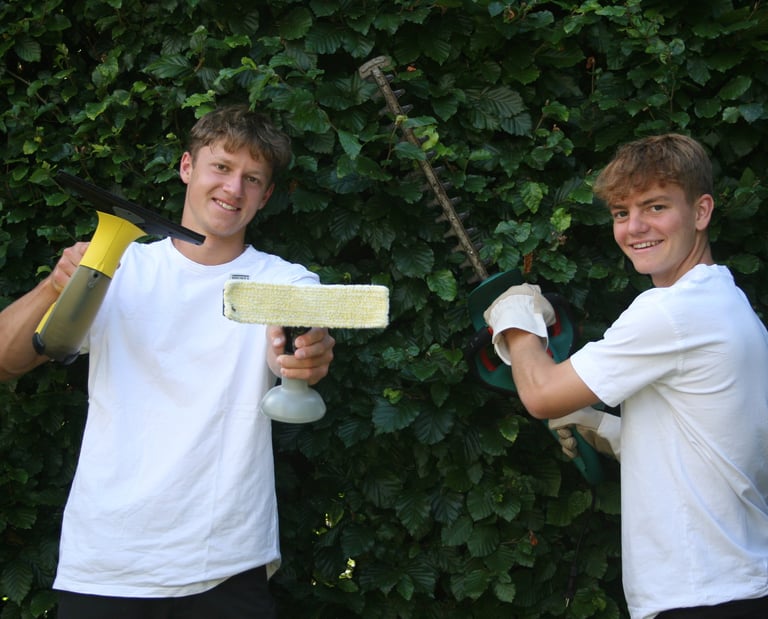 ... mähen Deinen Rasen, schneiden Deine Hecke, pflegen Deine Beete, kratzen Deine Fugen und reinigen Deine Terasse.